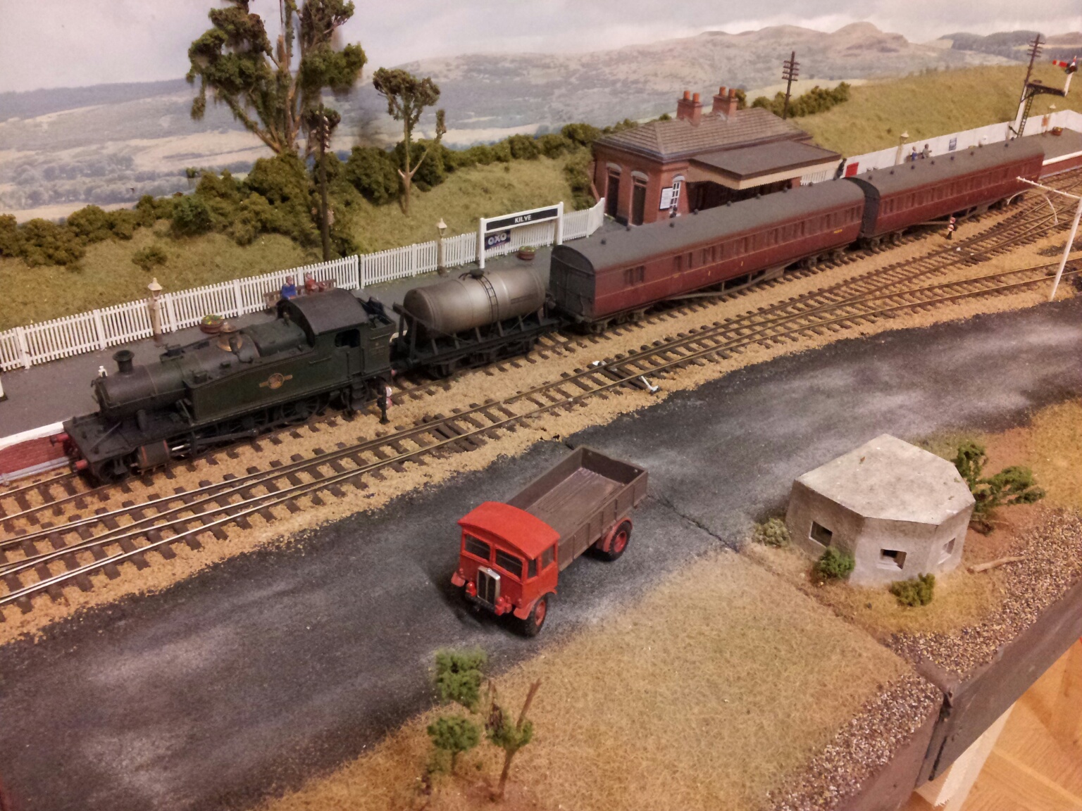 Rolling Stock The stock is nearly all ready to run from the main manufacturers, but before running everything is weathered and all locos receive a crew and real coal. Loco lamps are also being added at the time of writing. Some kits have been made and a few self-made items run though such as the milk road-rail tanker. Dates for running range from the mid-1950's to mid-1960's with a steam and diesel, along with a change of coach livery depending on which is running. Typical stock running will range from Pannier and Prairie tanks, Collette goods and 43xx Moguls through to DMU's and class 22 Diesels, all very typical of the branch lines around the Taunton area and all are renumbered as Taunton base engines. All locos and DMUs are DCC chipped and I use the Gaugemaster Prodigy as I find it does everything I need and is easy to use. |