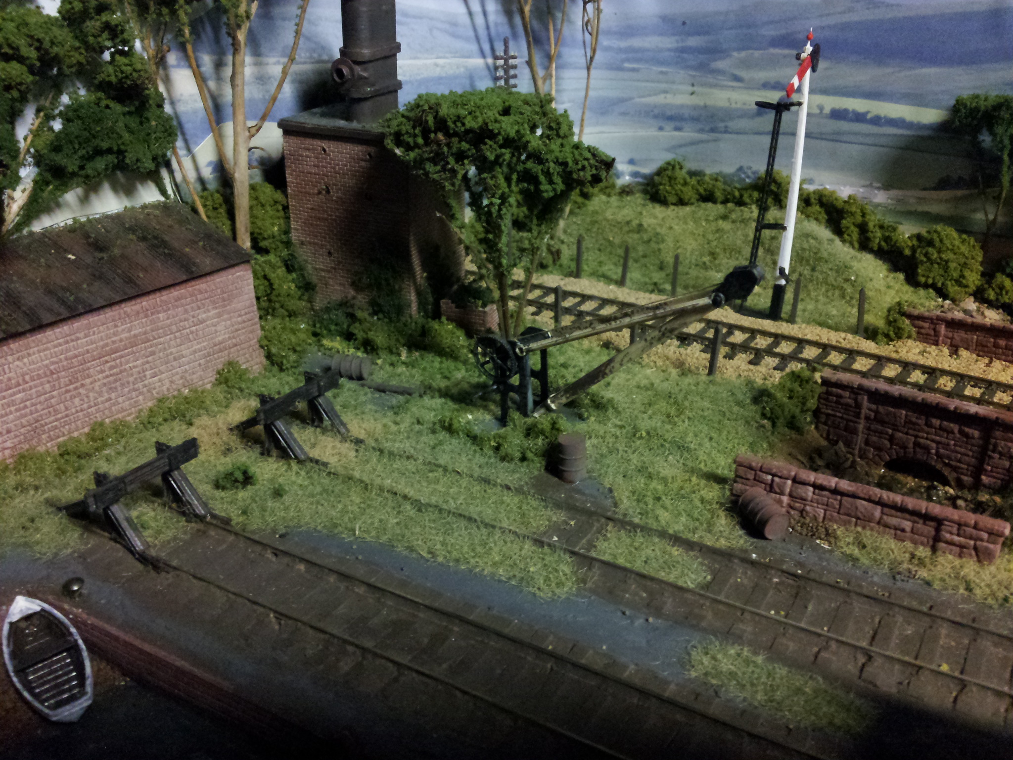 thickly and roughly as I could it built up to what I think is a very effective seascape. The river is the same method. The structures are from the usual brands of ready to plant buildings but all have been repainted in Western Region colours and