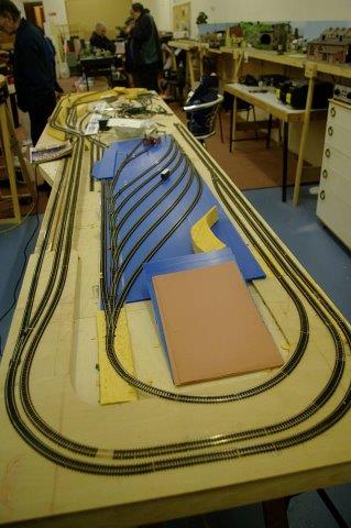 Progress is slow as track laying and scenic detailing only occurs after the bacon and sausage baps have been prepared!